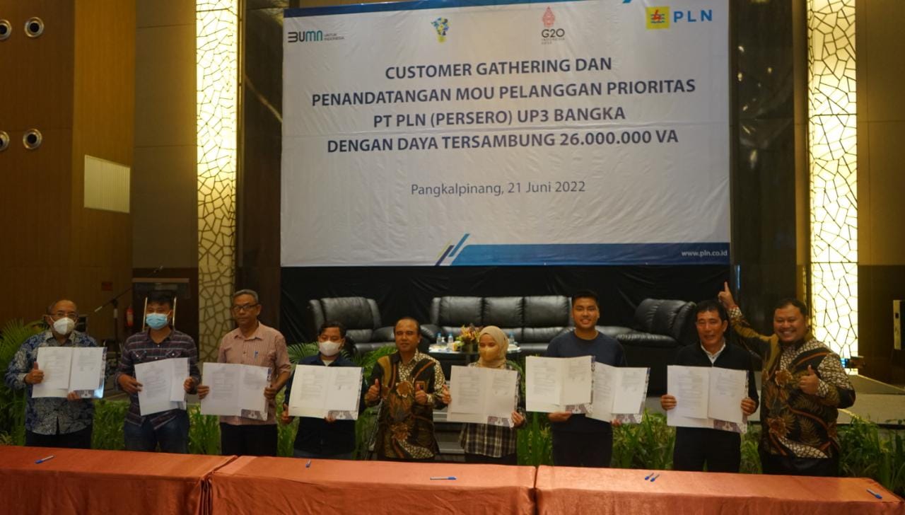 PT PLN (Persero) UIW Babel terus berkomitmen untuk mendukung tumbuhnya sektor industri dan bisnis di Provinsi Kepulauan Bangka Belitung. Komitmen ini terkait kesepakatan kerjasama pasang baru dan tambah daya listrik yang dituangkan dalam Surat Perjanjian Jual Beli Tenaga Listrik (SPJBTL) dan Memorandum of Understanding (MoU) atau Nota Kesepahaman dengan sepuluh Perusahaan yang akan mengembangkan usahanya di Provinsi Bangka Belitung.