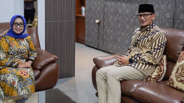Ketua Dewan Pimpinan Wilayah (DPW) Partai Persatuan Pembangunan (PPP) Jawa Timur, Nyai Munjidah Wahab bertemu dengan Menparekraf Sandiaga Uno. (Foto: Istimewa).