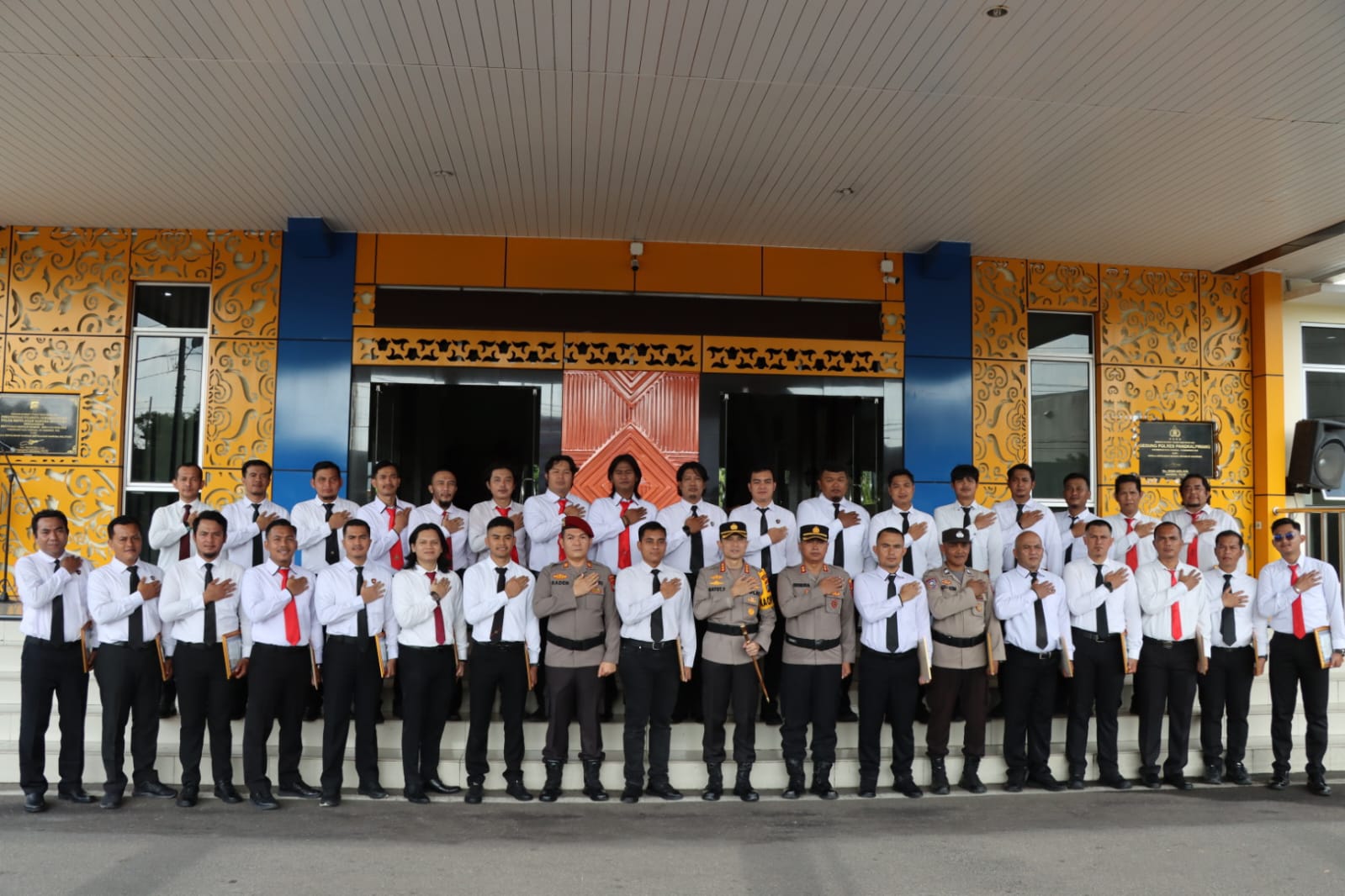 Kapolresta Pangkalpinang, Kombes Pol Gatot Yulianto saat berfoto bersama dengan puluhan personel yang menerima penghargaan, Senin (17/2/2025).(Foto/Ist)