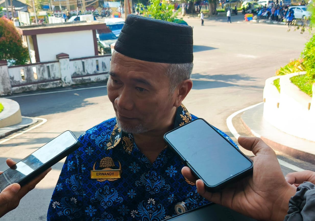 Kepala Dinas Pendidikan Kota Pangkalpinang, Dr. Erwandy, S.E, MM., saat wawancara bersama awak media usai Upacara Peringatan Hari Pendidikan Nasional 2025 di halaman Kantor Wali Kota Pangkalpinang, Jumat (2/5/2025).(Foto/Nugraha)