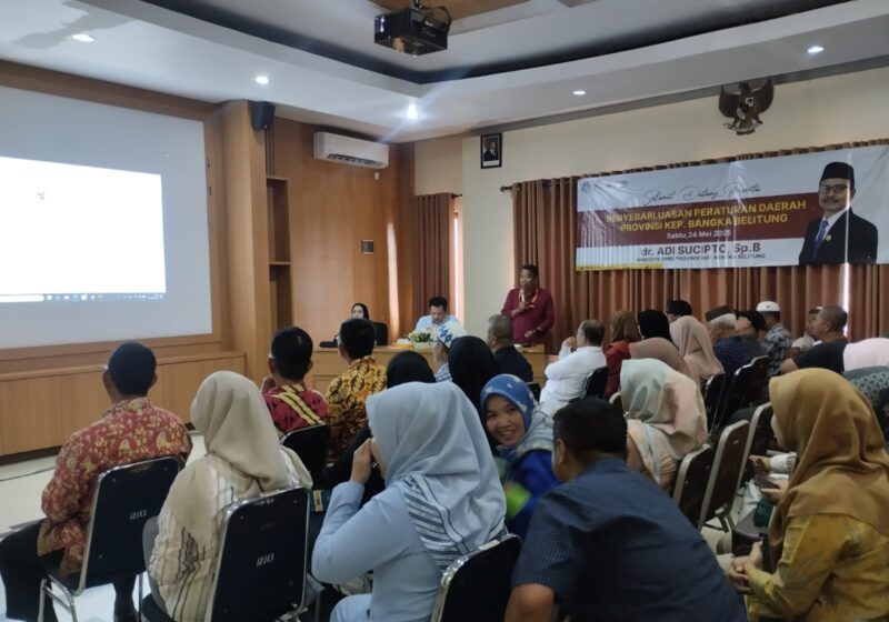 KILASBABEL.COM – Anggota DPRD Provinsi Kepulauan Bangka Belitung Adi Sucipto menggelar kegiatan Penyebarluasa Peraturan Daerah (Perda) kepada masyarakat Pangkalpinang pada Sabtu pagi (24/5/2025), bertempat di Ruang Pertemuan Gedung Lama RSBT Pangkalpinang.