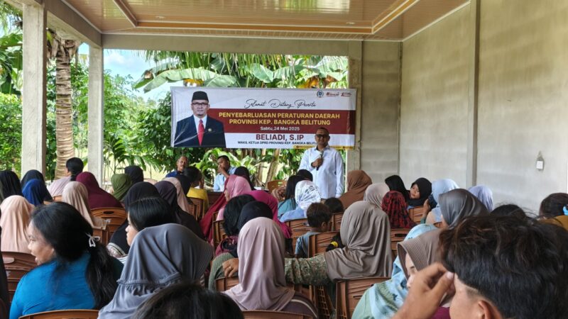 KILASBABEL.COM – Wakil Ketua DPRD Provinsi Kepulauan Bangka Belitung, Beliadi melaksanakan kegiatan penyebarluasan Peraturan Daerah Nomor 3 Tahun 2024 tentang Penyelenggaraan Kesejahteraan Sosial di Desa Lilangan, Kecamatan Gantung, Kabupaten Belitung Timur, pada Sabtu (24/5). Kegiatan ini disambut antusias oleh masyarakat setempat yang hadir dalam jumlah besar.