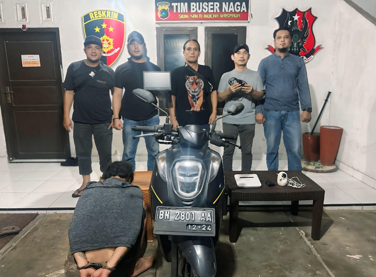Menerima laporan itu, dikatakan Riza, Tim Buser Naga langsung melakukan penyelidikan dan olah tempat kejadian perkara (TKP). Setelah mengetahui identitas pelaku dari rekaman CCTV, tim bergerak cepat mengamankan pelaku.