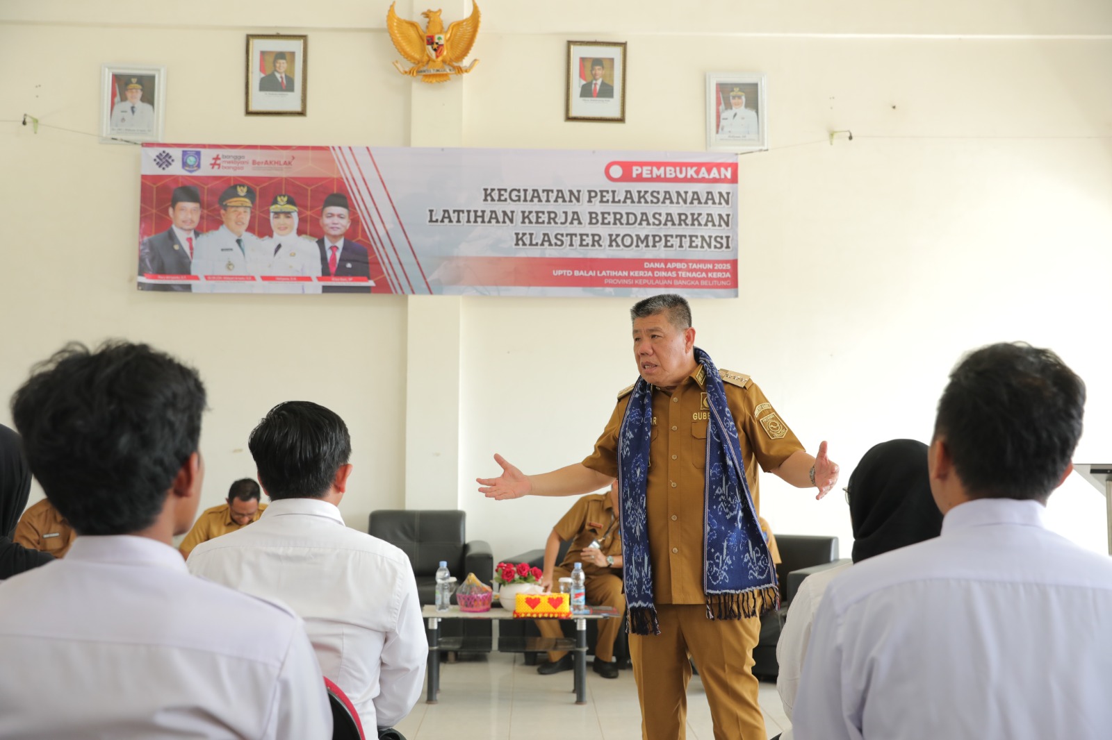KILASBABEL.COM – Gubernur Provinsi Kepulauan Bangka Belitung (Babel), Hidayat Arsani, secara resmi membuka kegiatan Pelatihan Dalam Rangka Peningkatan Kompetensi bagi Pencari Kerja (Pencaker) Berdasarkan Klaster Kompetensi Tahun Anggaran 2025, yang berlangsung di Kantor Unit Pelaksana Teknis Daerah (UPTD) Balai Latihan Kerja Industri (BLK) Babel, Senin (30/6/2025).