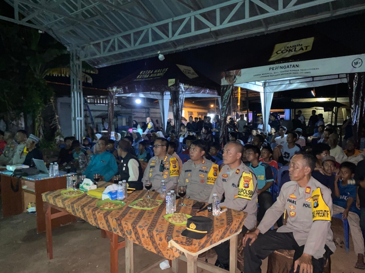 Kapolresta Pangkalpinang, Kombes Pol Max Mariners bersama jajaran saat nobar bersama warga Desa Batu Belakang Kecamatan Pangkalan Baru Kabupaten Bangka Tengah, Selasa (29/7/2025) malam.(Foto/Ist)