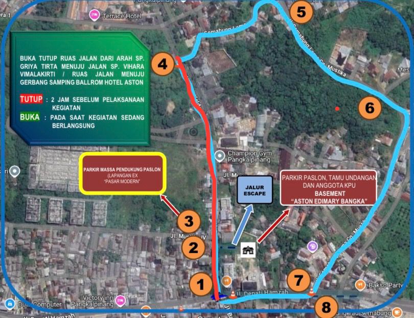 Seperti diketahui bersama, debat tersebut dijadwalkan akan berlangsung pada Jumat (8/8/2025) malam pukul 19.30 WIB di Hotel Aston Emidary Bangka Hotel & Conference Center. Untuk mendukung kelancaran kegiatan, pengalihan arus akan dimulai pada pukul 17.30 WIB hingga selesai acara.