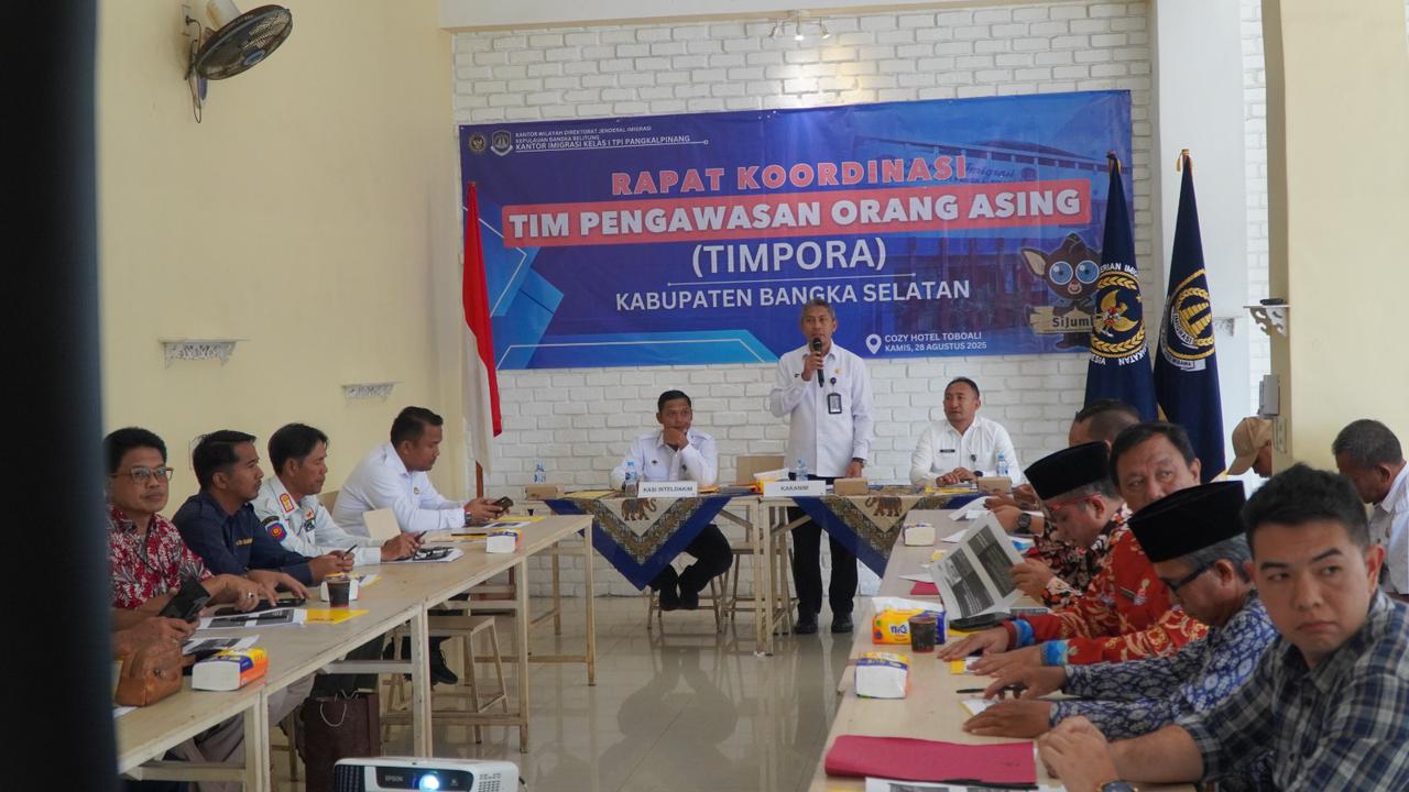 KILASBABEL.COM, BANGKA SELATAN – Kantor Imigrasi Kelas I TPI Pangkalpinang menggelar Rapat TIMPORA (Tim Pengawasan Orang Asing) bertempat di Cozy Motel Toboali Kabupaten Bangka Selatan pada Kamis (28/8/2025).