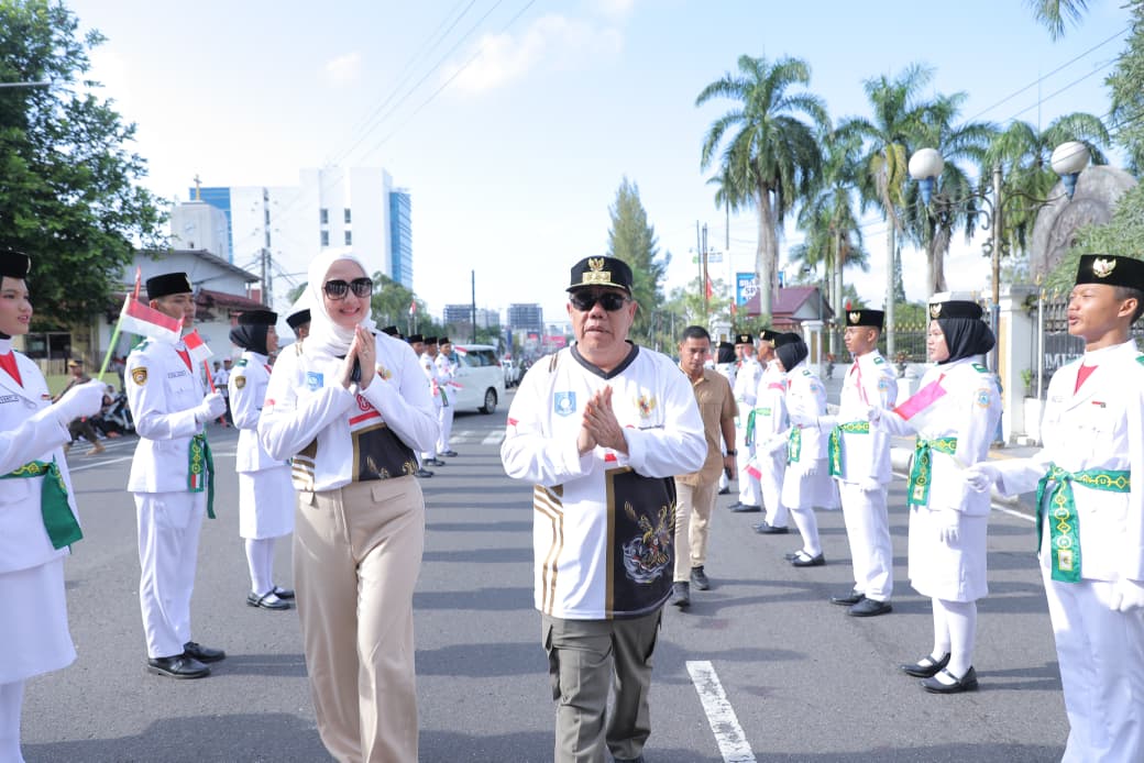 KILASBABEL.COM – Secara resmi, Gubernur Kepulauan Bangka Belitung (Babel) Hidayat Arsani didampingi Ketua TP PKK Babel, Noni Hidayat Arsani melepas pawai karnaval baris berbaris dengan mengibarkan bendera start yang di mulai di Titik Nol Kilometer, Senin, (1/9/2025)