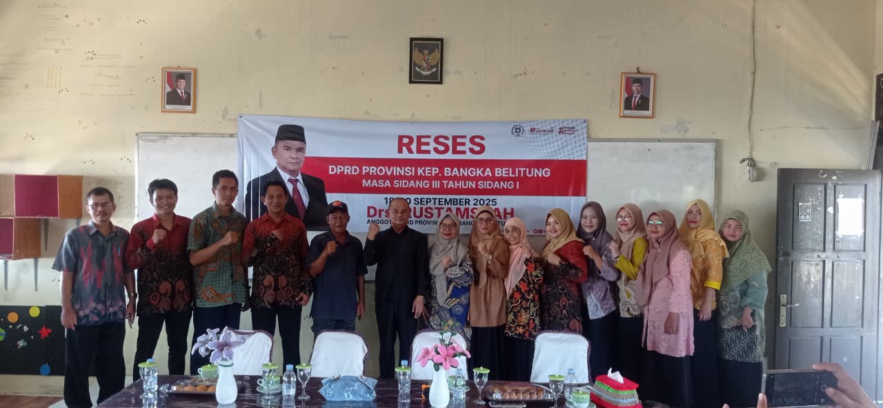 KILASBABEL.COM – Anggota DPRD Provinsi Kepulauan Bangka Belitung dari Fraksi PDI Perjuangan, Rustamsyah melaksanakan kegiatan reses Masa Sidang III Tahun Sidang I di SMA Negeri 1 Belinyu (18/9/2025).