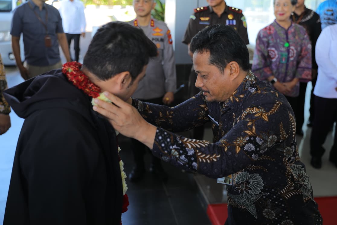 “Selamat datang di Negeri Serumpun Sebalai,” sambut Sekda Fery sambil mengalungkan bunga kepada Wakil Ketua Komisi III DPR RI tersebut.