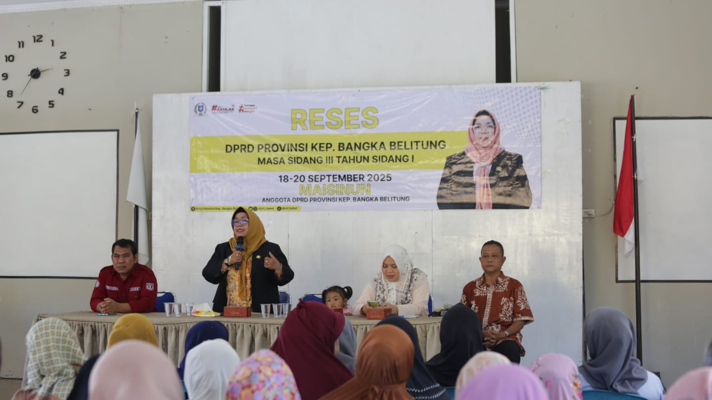 KILASBABEL.COM- Anggota DPRD Provinsi Kepulauan Bangka Belitung, Maisinun melaksanakan kegiatan Reses Masa Sidang III Tahun Sidang I untuk Dapil IV (Belitung dan Belitung Timur) di Desa Mekar Jaya, Kabupaten Belitung Timur, Jumat (19/9).