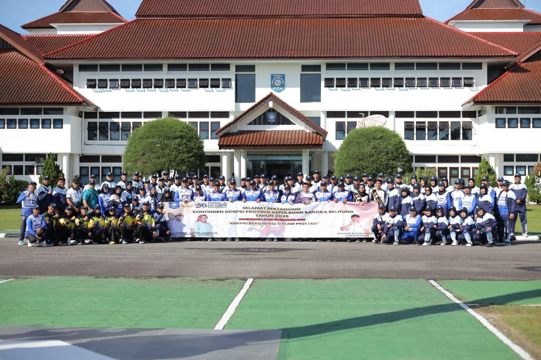 “Jaga rasa kesetiakawanan antar sesama anggota KORPRI, dapat melahirkan atlet KORPRI yang berprestasi, dapat mengharumkan Provinsi Babel, serta menciptakan anggota KORPRI yang sehat untuk mencapai pemerintahan yang sehat,” ujar Pj Sekda membacakan pesan Gubernur Hidayat Arsani, saat melepas kontingen di Halaman Kantor Gubernur Babel, Jumat (3/9/2025).