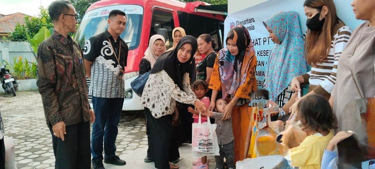 Bersamaan dengan edukasi penanganan stunting, PT TIMAH Tbk juga menghadirkan pelayanan kesehatan gratis melalui Mobil Sehat bagi masyarakat di Kelurahan Pamak.