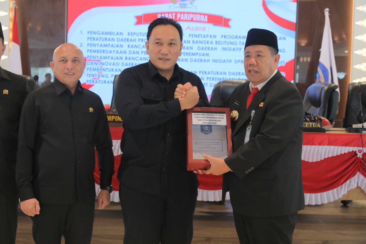 KILASBABEL.COM, PANGKALPINANG – Gubernur Kepulauan Bangka Belitung (Babel) Hidayat Arsani, menghadiri sidang paripurna yang digelar DPRD Babel dengan agenda penetapan Program Pembentukan Peraturan Daerah (Propemperda) Tahun 2026, penyampaian Rancangan Peraturan Daerah (Ranperda) Inisiatif DPRD tentang Pemberdayaan dan Perlindungan Perempuan serta Ranperda tentang Riset dan Inovasi Daerah sekaligus pembentukan panitia khusus, di Gedung Mahligai Kantor Gubernur, Senin (17/11/2025).