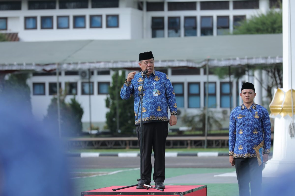 Gubernur Babel Hidayat Arsani saat menjadi inspektur upacara bendera Hari Kesadaran Nasional di halaman Kantor Gubernur Babel, Senin (17/11/2025).(Foto/Ist)