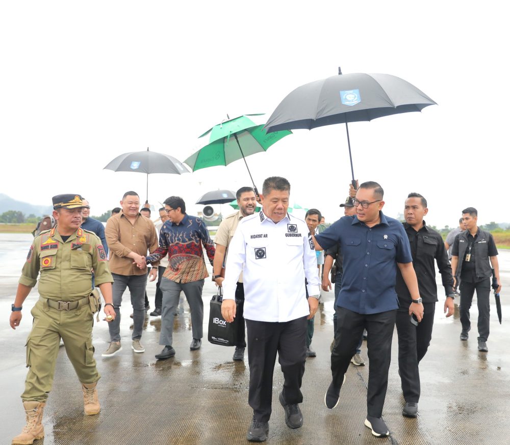 Gubernur Babel Hidayat Arsani saat menyambut kedatangan Wamen Investasi di Bandara Depati Amir Pangkalpinang, Kamis (20/11/2025).(Foto/Ist)