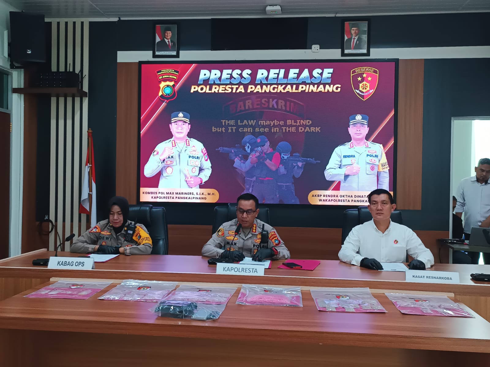 Ungkap kasus ini disampaikan langsung oleh Kapolresta Pangkalpinang Kombes Pol Max Mariners dalam konferensi pers yang digelar di Ruang SAR Polresta Pangkalpinang, Senin (23/2/2026) yang turut didampingi Kabag Ops Polresta Pangkalpinang Kompol Dewi Rahmailis Munir dan Kasat Resnarkoba Polresta Pangkalpinang AKP Yandri.