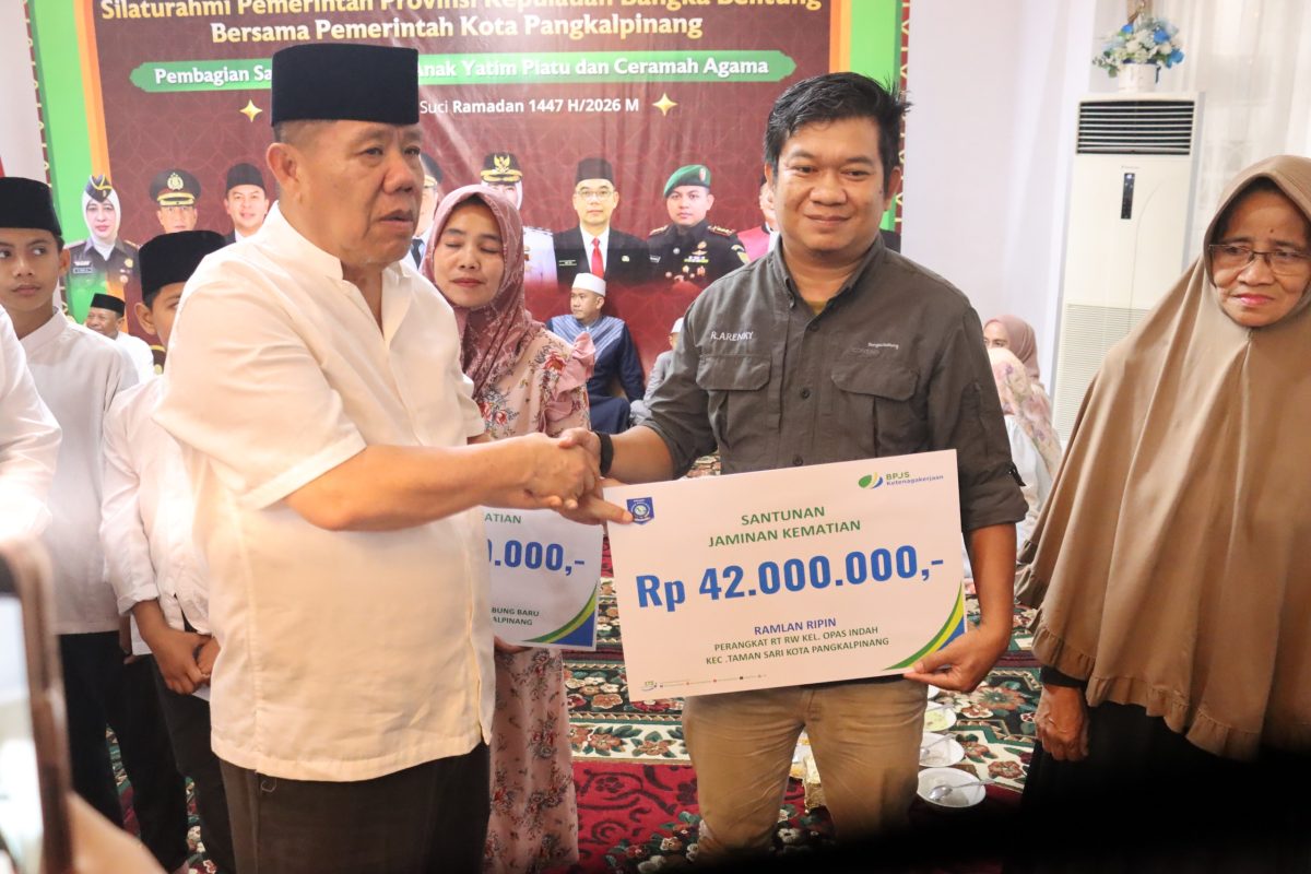 KILASBABEL.COM, PANGKALPINANG Gubernur Kepulauan Bangka Belitung (Babel), Hidayat Arsani, menghadiri kegiatan silaturahmi antara Pemerintah Provinsi (Pemprov) Babel dan Pemerintah Kota (Pemkot) Pangkalpinang yang dirangkaikan dengan penyerahan santunan kepada anak yatim piatu, dalam rangka bulan suci Ramadan 1447 Hijriah, yang berlangsung di rumah dinas Wali Kota Pangkalpinang, Jumat (27/2/2026).